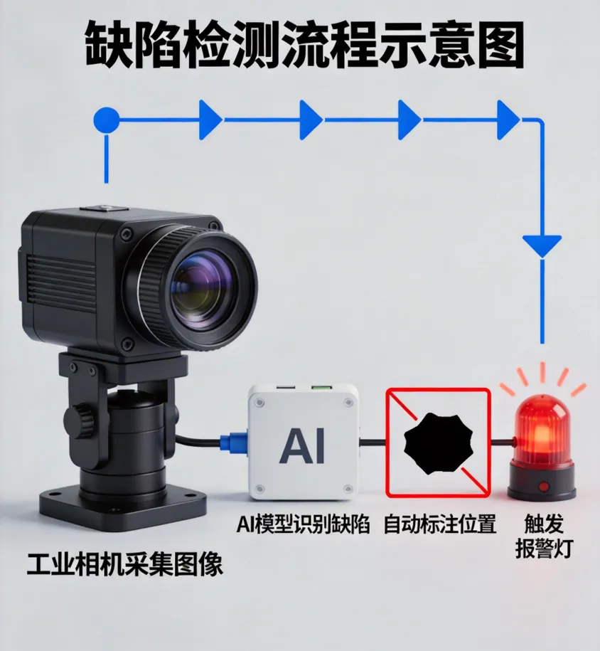 传统痛点:人工质检易疲劳、标准不一,微小缺陷识别困难。