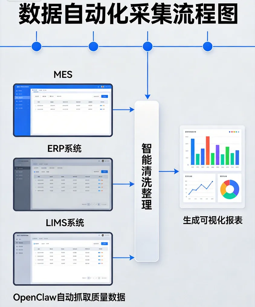 1.自动抓取:定时从MES、LIMS、SCADA等系统提取数据