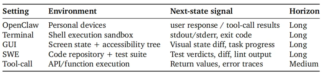 而且这套范式天然是跨场景的,对话、工具调用、代码编写、图形界面操作这四类任务产生的 next-state 虽然形态各异,但都可以纳入同一个学习框架。这是一个非常有潜力的方向,我们正在积极推进。"