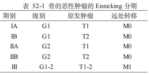 骨肉瘤的临床分期多应用Enneking提出的原发恶性骨肿瘤分期系统。