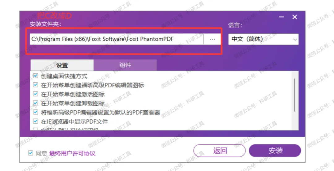 5. 📌 将安装路径中的“C”盘改为“D”盘(避免占用系统盘空间);