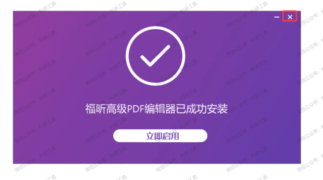 8. ❌ 安装完成后,点击界面右上角的“X”关闭弹窗;