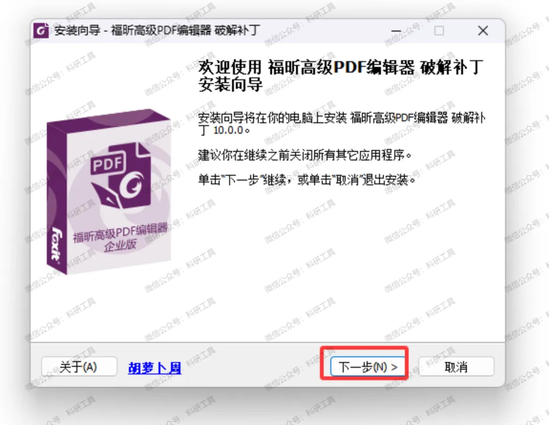 10. ➡️ 点击破解补丁界面中的“下一步”;