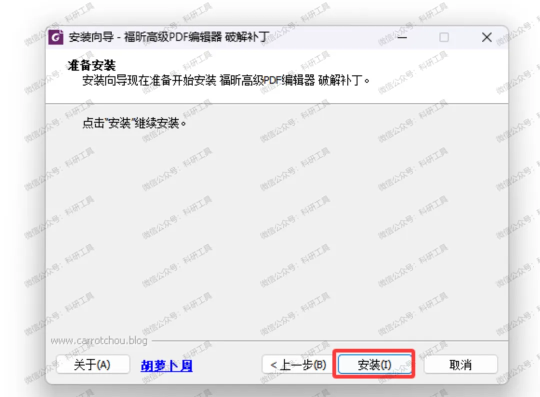 11. 🚀 继续点击“安装”,开始安装破解补丁;