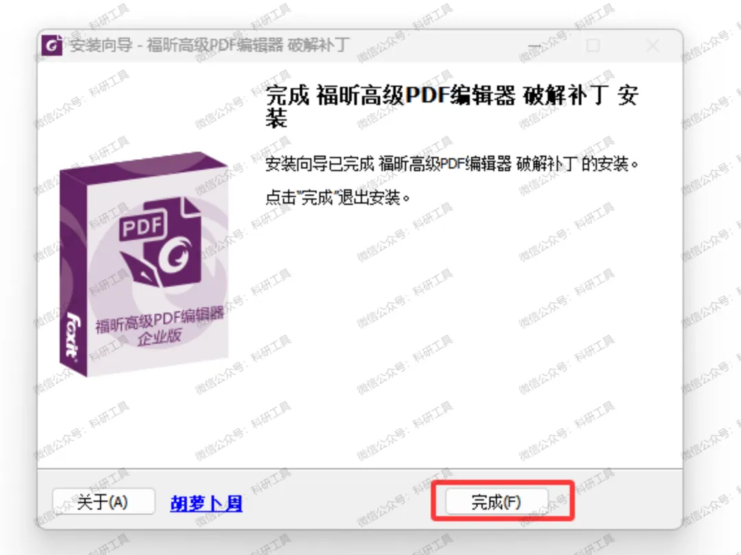 13. ✅ 点击“完成”,关闭破解补丁界面;