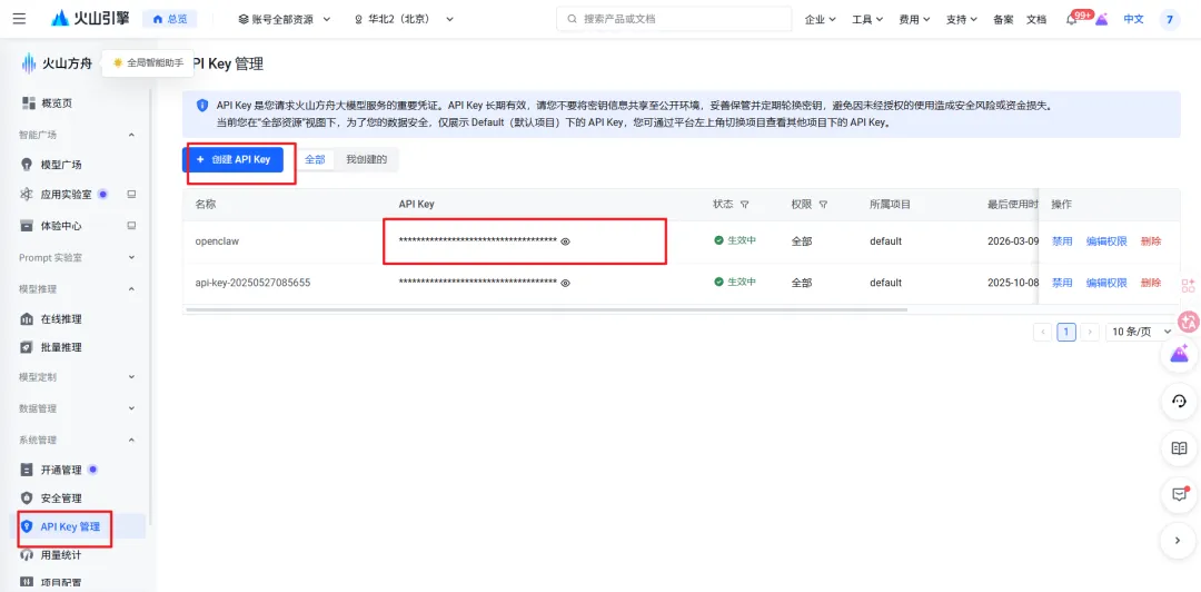 获取APIKEY:https://console.volcengine.com/ark/region:ark+cn-beijing/apikey