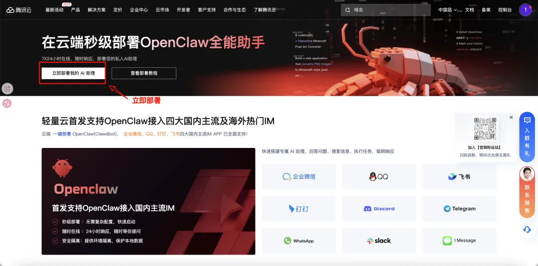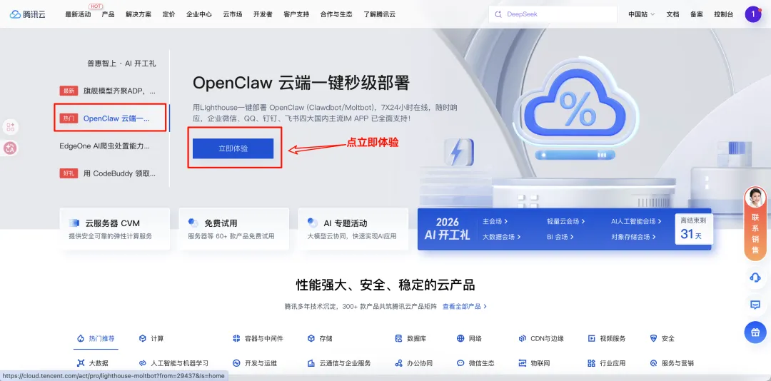 腾讯云已经支持 OpenClaw,免去安装环境和依赖