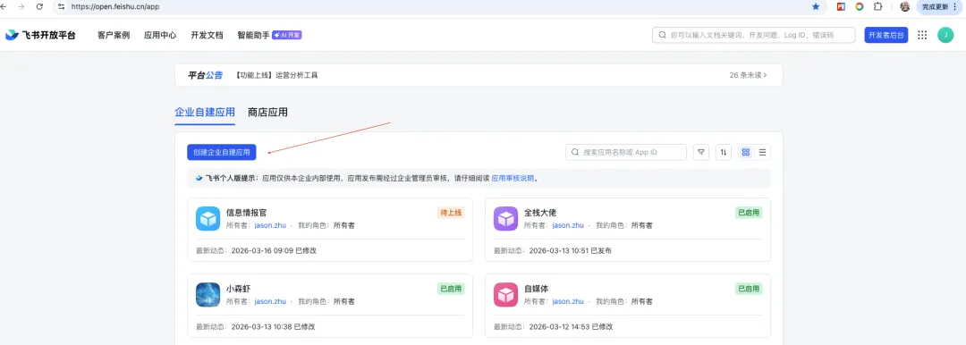 👉 https://open.feishu.cn/app