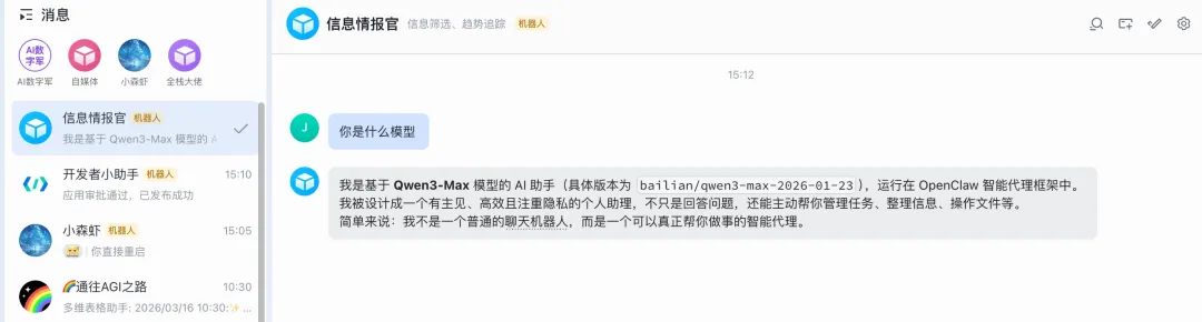 打开飞书,搜索你创建的机器人,直接开始对话吧!