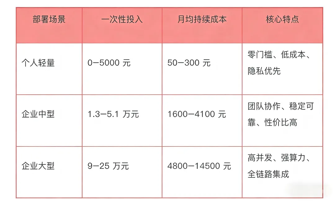 算力/服务器:云端高性能实例800–2000元/月;本地电费 + 运维300–800元/月