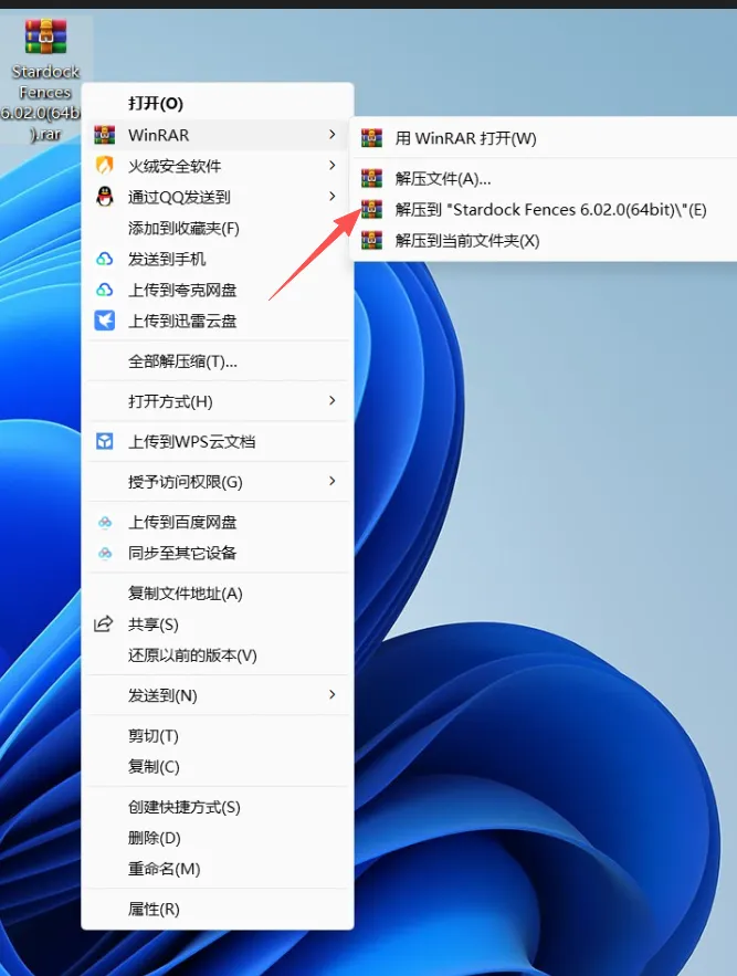 第2步、 将文件下载完成后,右键解压到Stardock Fences 6.02.0(64bit)