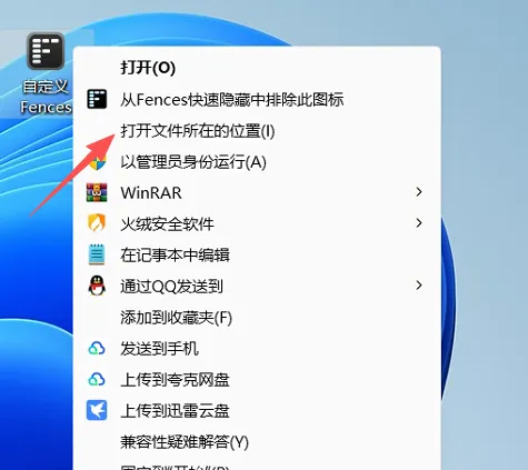 8.在桌面中找到自定义Fences右键打开所在的位置