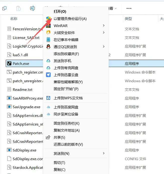 11.然后右键Patch程序,选择以管理员身份运行