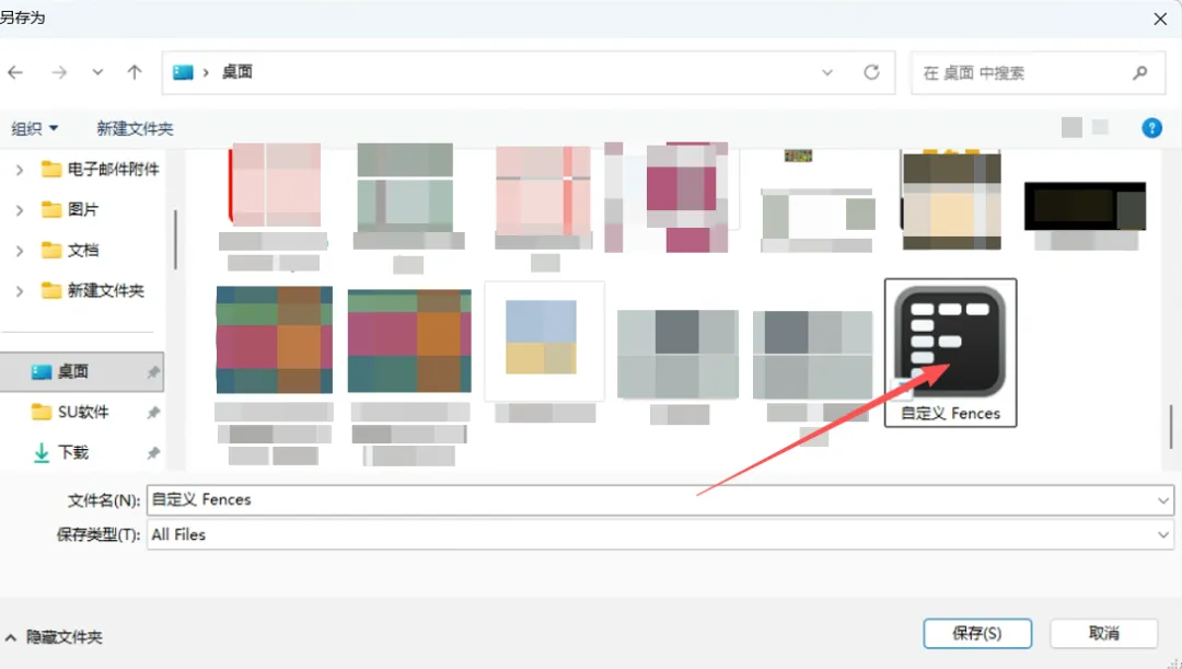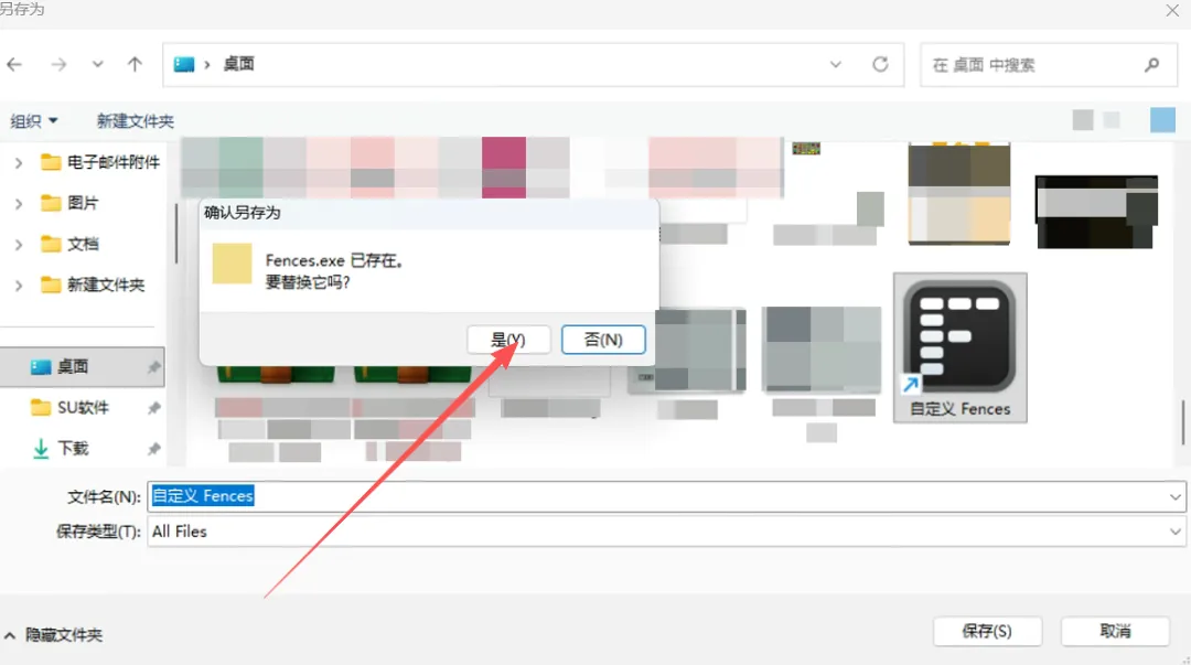 13、弹窗选择1、桌面,2、自定义Fences,3点保存