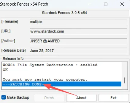 15.提示成功,关闭Patch程序。然后重启系统,必须要重启系统