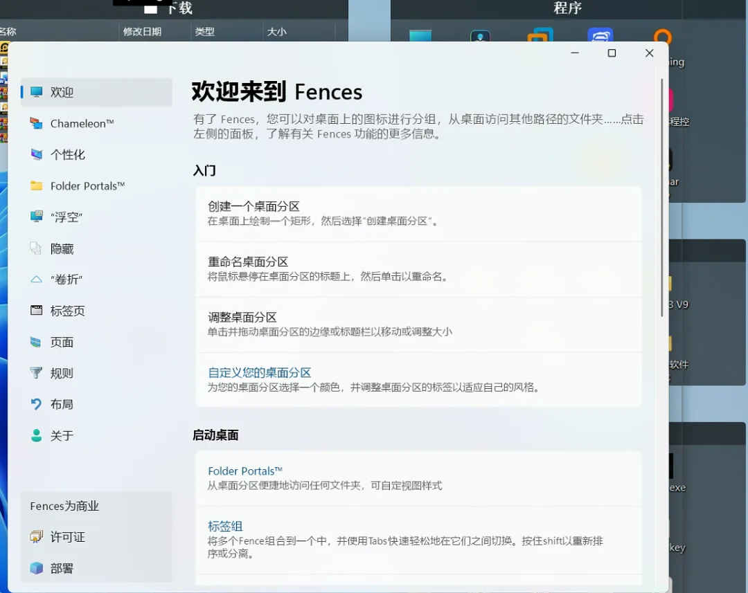 专业的 Fences 功能使得快速整理您的桌面变得轻而易举。