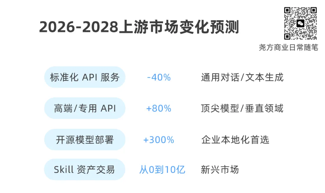 投资启示:押注"开源生态基础设施"和"高端专用 API",回避"标准化通用 API 服务商"。价值正在从"卖水人"转移到"卖铲子的人"。