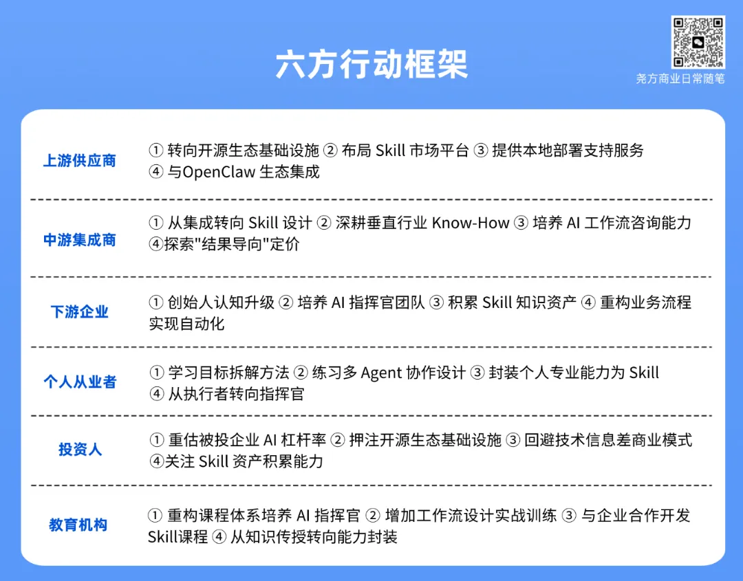 这不是渐进式改进,这是价值链的断裂与重组。过去靠"信息差"和"技术壁垒"赚钱的环节,正在被OpenClaw夷为平地。