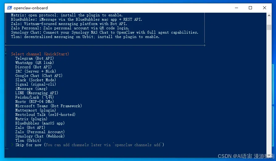 • 对话方式:先选择Skip for now,我们使用网页对话。