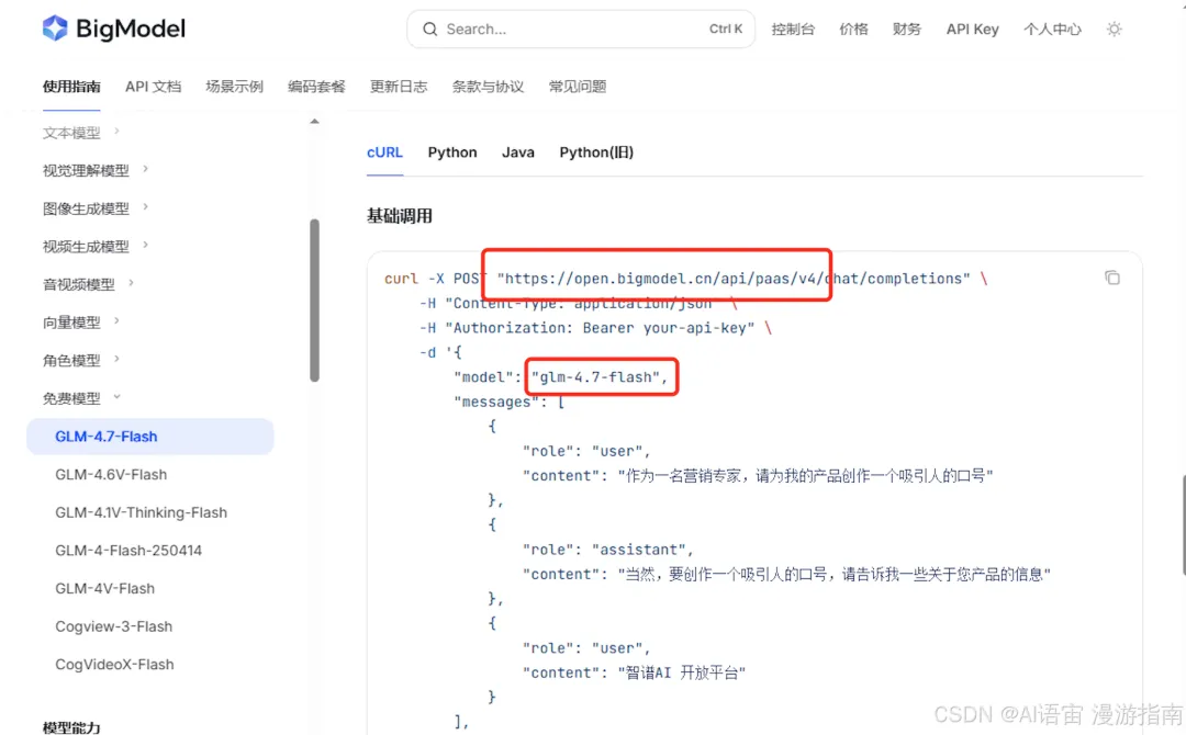 我们用智谱的 GLM-4.7-Flash,这个是免费的。