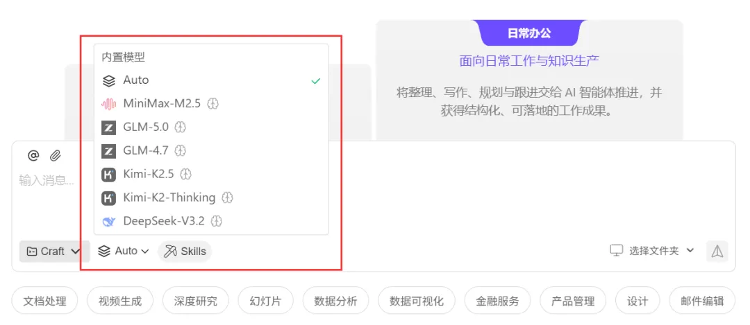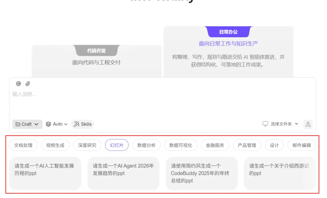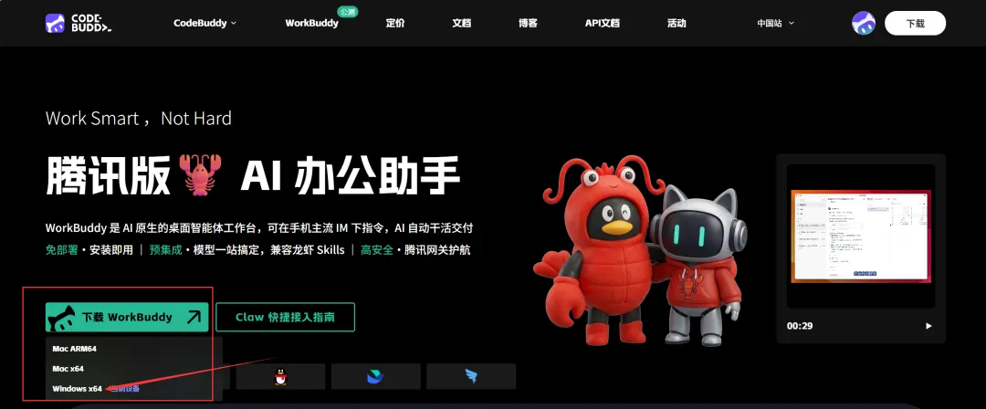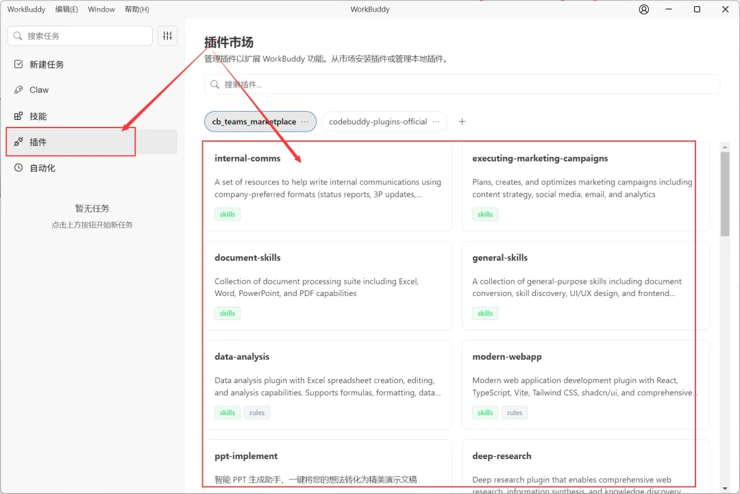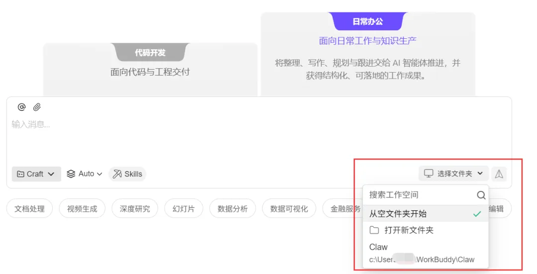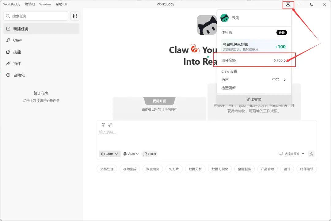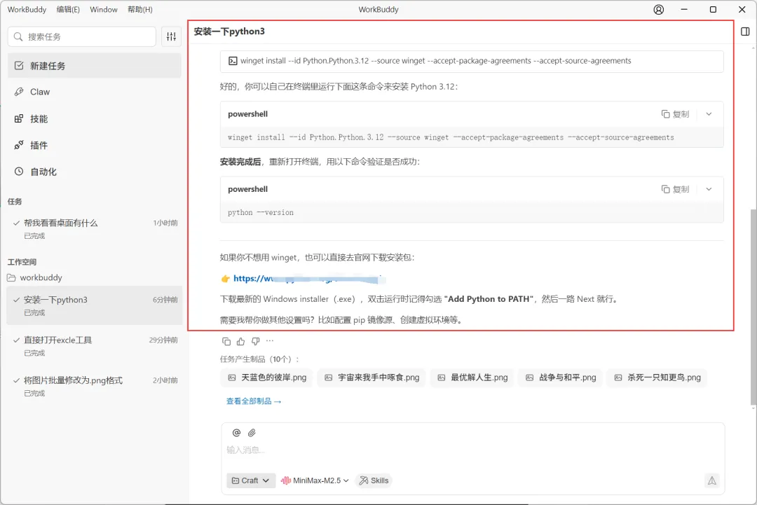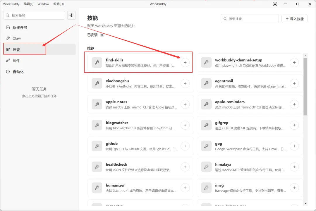 腾讯版OpenClaw | 1800字实操指南(喂饭级)大家好,我是爱玩AI的不正经绣才。最近火爆全网的OpenClaw,是技术党的狂欢,但对普通人非常不友好。为什么这么说呢?B站近百万播放的OpenClaw安装部署教程,长达10分钟,直接劝退小白。难道小白就不能养虾了吗?当然不是,其实腾讯刚上线的WorkBuddy,就完美解决了这个痛点,它兼容OpenClaw的所有Skills,无需复杂部署,接入微信也能一步搞定。说到这里,可能又有小白要迷糊了,OpenClaw、Skills到底是个啥。别担心!今天这篇近1800字实操指南📕,不光带大家轻松养虾,同时彻底搞懂那些AI新名词。01 OpenClaw是什么🤔介绍OpenClaw之前,我们必须知道智能体agent和技能Skills这两个概念。一句话解释(大白话)智能体:会思考,给信息给建议的一个专业小助手,如旅行规划师,客服助手等。技能:一个技能包,用于提升智能体的专业能力,如安装一个法律顾问Skills,那么智能体就拥有了专业律师的能力。OpenClaw:本质仍然是个AI智能体,但可以操作电脑直接交付任务,如发邮件、写文档、操作工具等。那OpenClaw跟小龙虾又有什么关系,为什么都说养虾呢?因为OpenClaw的logo是个红色卡通小龙虾,而Claw本意是爪子,意味着小龙虾可以自己上手操作电脑,更多的还是玩梗,也让大众更容易记住。养虾其实就是部署OpenClaw、接入大模型、安装技能等,打造一个专属的能真正干活的AI智能体。02 WorkBuddy实操指南📖简单介绍下WorkBuddy,工具定位和OpenClaw一样,兼容OpenClaw的所有技能,能操作电脑进行办公,并且无需部署,将养虾难度大幅度降低。▐ 安装WrokBuddy地址:https://www.codebuddy.cn/work/下载和电脑操作系统匹配的WorkBuddy,之后的安装和普通电脑软件一样简单。▐ 领取积分打开WorkBuddy,登录后点击右上角的图标,再点击积分余额,可以免费领取5000积分。▐ 功能介绍(核心)打开WorkBuddy后,搞懂左上角这些功能即可,下面我将一一介绍。新建任务点击新建任务按钮时,可以看到主界面有不少内容,可以分为7部分来看。第①部分:只用日常办公就好,代码开发不用去了解;第②部分:可以选择对话过程的上下文和上传附件用作参考;第③部分:当我们点击Craft时,可以看到三个选项:Craft、Plan、Ask.Craft:直接交付成品。Plan:给出详细的任务步骤。Ask:解决当前任务出现的问题。其实我们只用Craft就行,一样也能解决问题,其它两个可用可不用,适合更加专业的人士使用。第④部分:点击Auto时,可以看到多个大模型,选自己喜欢的,或者都不选;第⑤部分:选择合适的技能来完成任务,这里我还没有安装任何技能;第⑥部分:可以选择WorkBuddy的默认工作目录,也可以自己新建一个目录;第⑦部分:展示任务案例的,如果你不知道要干什么,可以选一个体验一下;Claw这个页面其实和新建任务一样,主要区别是Claw页面允许接入第三方工具,如微信、飞书等来远程操作WorkBuddy.技能强烈推荐安装find-skills这个技能,它可以帮助找到任务所需的技能,其他的按需安装。插件插件这块,小白直接跳过即可,这些不需要我们思考。自动化这块和定时任务一样,比较简单,后面会展示如何用的。▐ 新建任务测试任务一:批量处理图片格式(1)准备了一些书单图片;(2)选择工作目录和输入任务要求;(3)任务执行完毕;(4)图片已经批量修改为了png格式;任务二:安装python3建议把这个工具装上,因为WorkBuddy在操作办公软件时,基本上都会写python脚本。任务三:生成excel文件(1)输入任务要求;(2)任务执行完毕,可预览产物;(3)工作目录下已经生成了一个excel文件;(4)打开excel文件,效果很不错,还做了表格美化;任务四:将文档归类(1)输入任务要求;(2)任务执行完毕;(3)文档已经被分类整理;▐ 接入微信接入微信非常简单,仅需扫码就能完成。(1)点击Claw右侧的齿轮图标;(2)点击微信客服号集成右侧的配置;(3)微信扫码接入;(4)WorkBuddy绑定成功后,会给微信推送消息;然后就可以开始对话了,让它操作电脑工作。▐ 建立自动化任务(1)点击侧边栏的自动化,新建一个自动化任务;(2)到指定时间就会执行任务;03 结语✅本文展示了WorkBuddy的基础操作和简单案例,帮助小白快速上手。就我个人体验下来,感觉蛮强大的,只要安装合适的技能,建立一些自动化任务,可以极大提升工作和学习效率,让我们从重复劳动中解放出来,比如说,每天整理文件内容、收集各类资讯、发日报邮件等。当然,WorkBuddy的能力远不止文中展示的,有人甚至用它做出了可3D打印的汽车模型。虽然这类工具的褒贬不一,但技术本身没有对错,能体验下还是非常不错的,毕竟这会它们还是免费的。往期精选AI工具:👉ima知识库搭建 | 2400字实操指南(喂饭级)👉效率拉满!2026年必备的4款AI配音神器👉4款免费AI去水印工具!无需下载,直接用最后,如果你觉得这篇文章不错,记得点赞、转发、推荐或留言互动下,这样就不会错过下一篇文章了!