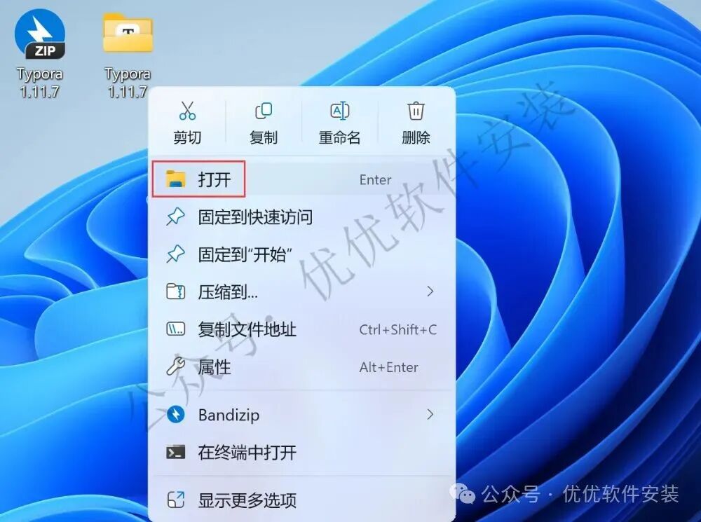 1、下载Typora 1.11.7软件安装包到电脑上,右键选择【解压到Typora 1.11.7\】