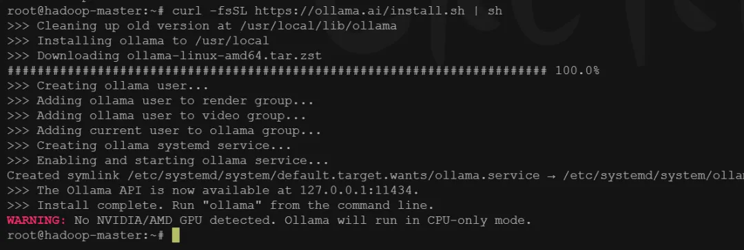 sudo apt-get install zstd # 安装 Ollama curl -fsSL https://ollama.ai/install.sh | sh