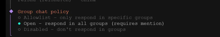 接下来的群聊策略选择 Open,这样可以响应所有的群聊: