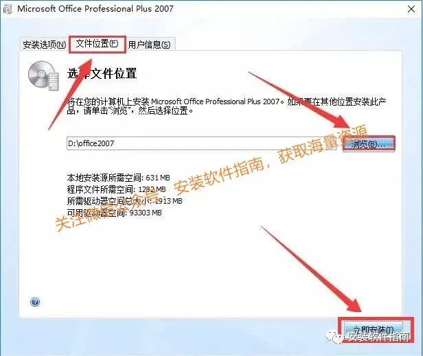 8、点击【文件位置】再点击【浏览】更改到任何盘符,点击【立即安装】