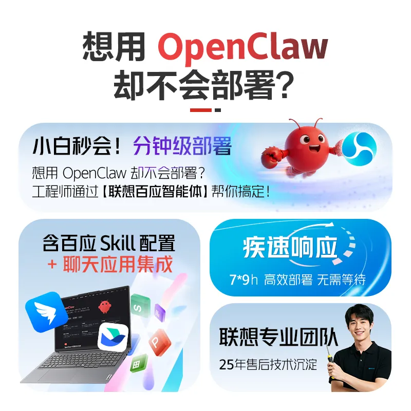 当前,AI智能体正从技术概念迈向规模化应用,OpenClaw的火爆,正是市场对智能生产力变革需求的真实写照。作为全球领先的科技企业,联想依托全栈技术能力、完善服务生态与深厚产业积淀,以全场景、全链路的OpenClaw布局,为AI智能体普惠化落地树立行业标杆,持续推动AI技术从实验室走向千行百业、千家万户。