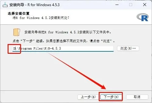 5.点击“浏览”可以选择软件安装路径,建议和教程中的保持一致,本例安装在D盘(安装路径不要出现中文),点击“下一步”