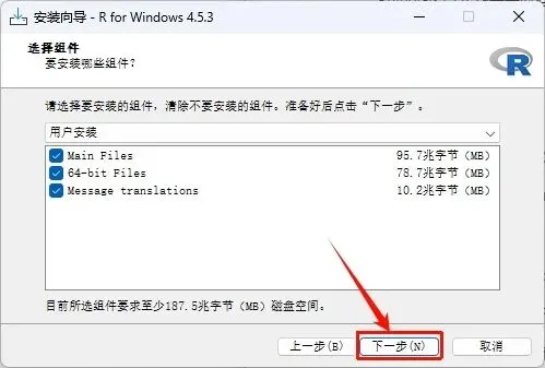 2.打开刚刚解压的文件夹,鼠标右键点击“R-4.5.0-win.exe”选择“以管理员身份运行”
