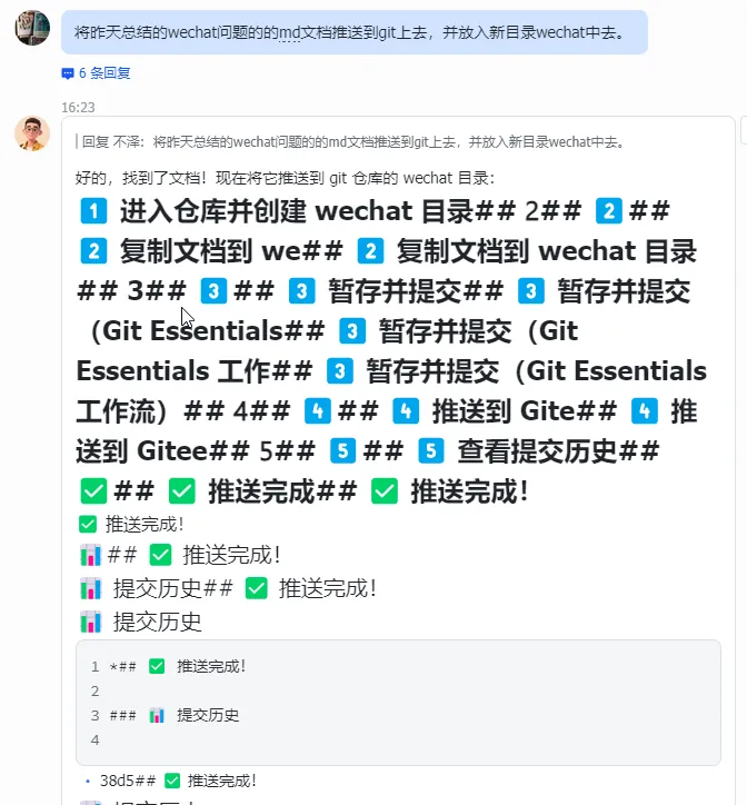 “将昨天总结的 wechat 问题的 md 文档推送到 git 上去,并放入新目录 wechat 中去。