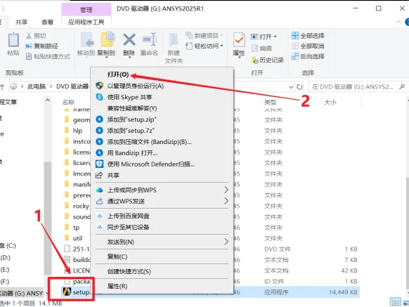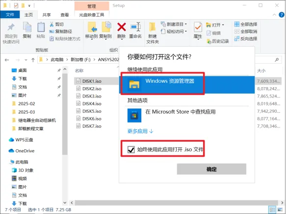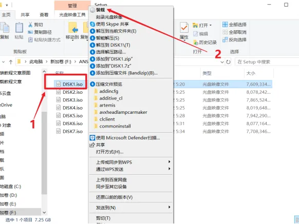 26.打开安装包解压后的【ANSYS 2025 R1(64bit)】文件夹中【Setup】文件夹,鼠标右击【DISK1】选择【装载】。