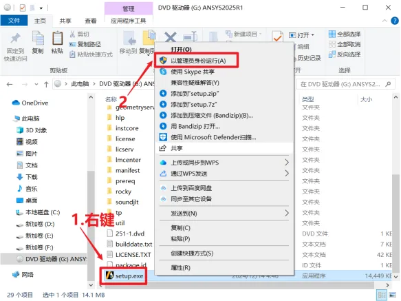 ②右键单击解压到【ANSYS 2025 R1(64bit)】(如果要安装所有功能,解压位置要保留至少150G容量;如果安装部分功能,至少80G容量,后面会给大家详细讲)