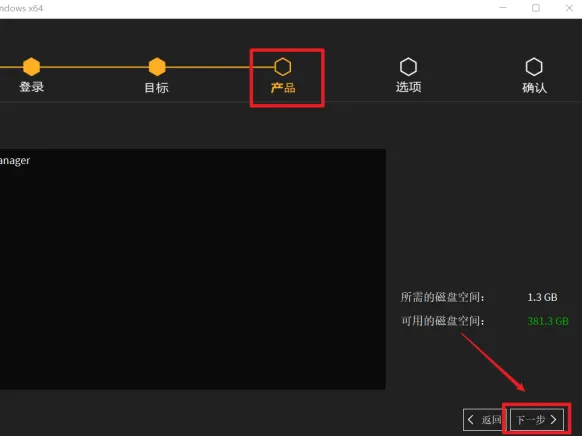9. 在【产品】界面中,点击【下一步】。
