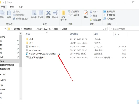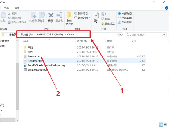 19.打开安装包解压后的【ANSYS2025 R1(64bit)】文件夹中的【Crack】文件夹,双击打开【license】。