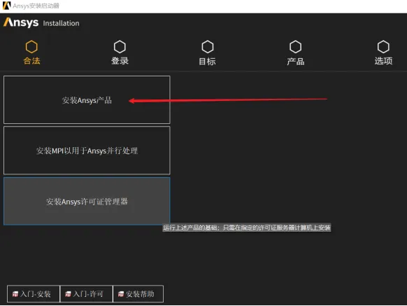 28.点击【安装Ansys产品】。