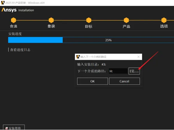 44.当安装进度到25%时,点击【览..】。