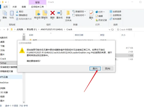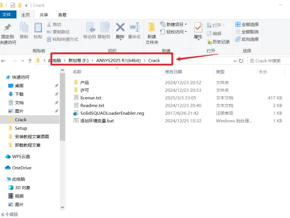 66. 打开安装包解压后的【ANSYS 2025 R1(64bit)】文件夹,双击打开【Crack】文件夹。