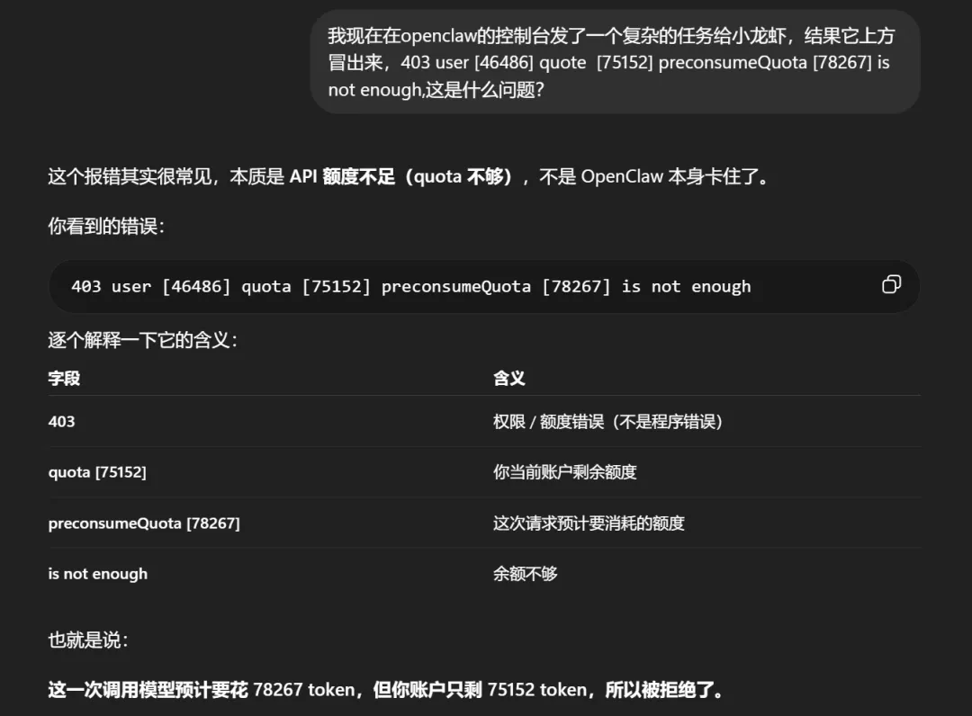 高自由度带来的是高不确定性,我们丢给小龙虾的一段提示词实际上是高度集成抽象的一个指令,小龙虾在面对这个过于简洁的指令时,压根不知道应该先做什么再做什么,它需要先思考出先做什么再做什么,然后再去行动,行动中万一遇到问题又需要切换其他可行的方法去尝试,因此,在我们看来一个很简单的任务在小龙虾眼里就变得很有挑战性了。