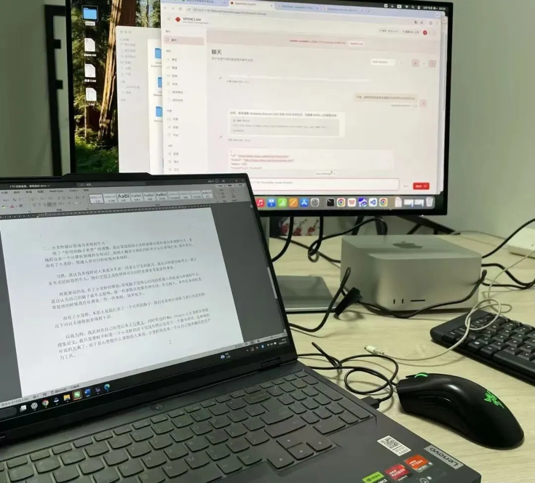 以我为例,我此刻一边在自己的笔记本上写推文,同时旁边的Mac Studio上小龙虾在帮我搜集论文,我只需要时不时看一下小龙虾的活干完没有然后发布下一个指令即可。