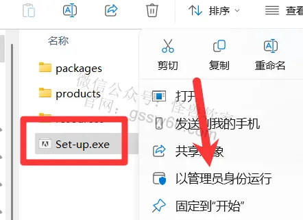 04,找到并选中“Set-up.exe”安装程序,点击鼠标右键,点击“以管理员身份运行”