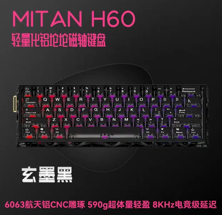 【全新键盘不含键帽】密探H60客制化铝坨坨镂空磁轴游戏机械键盘
