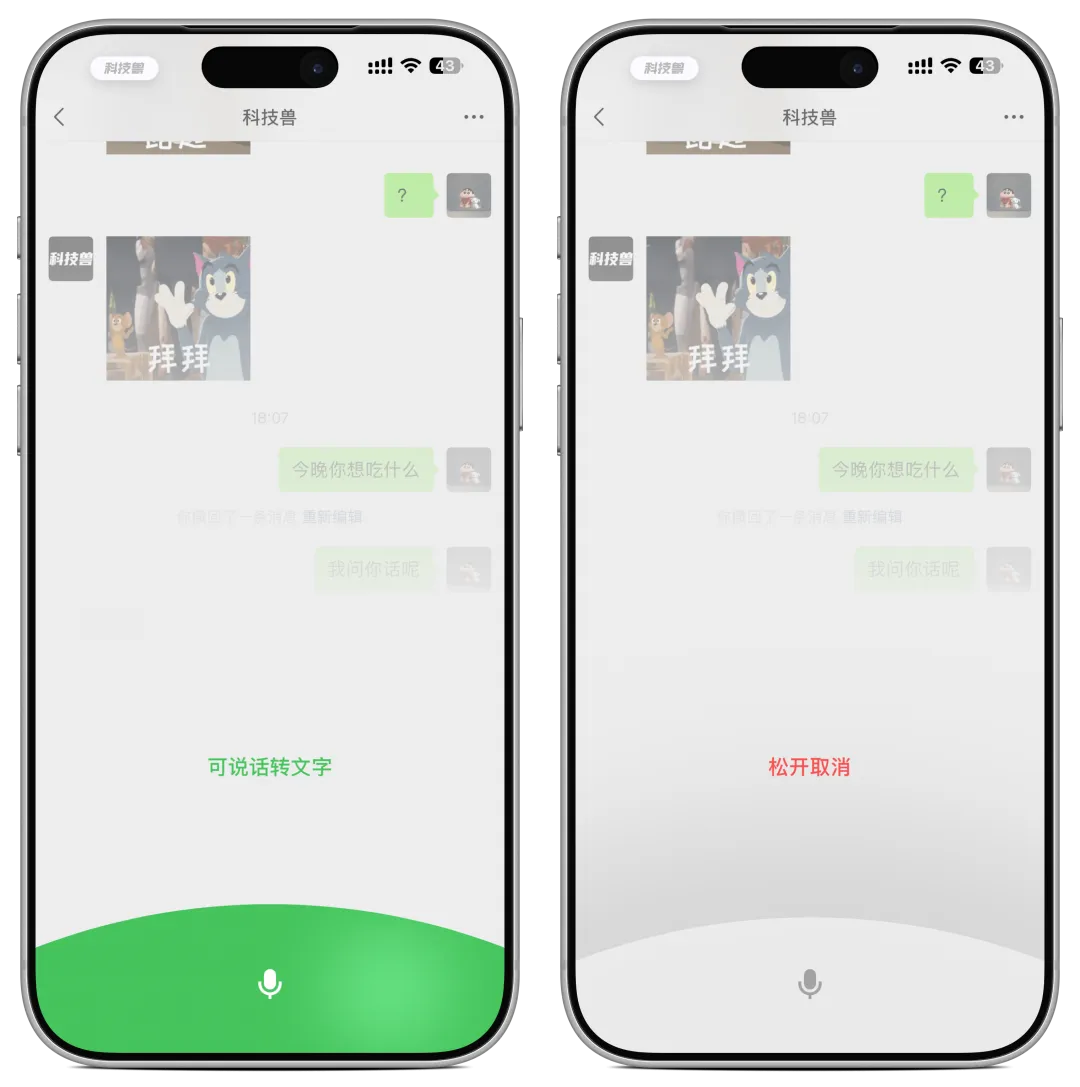 而最近的灰度测试则新增了一种新的操作方式:长按麦克风图标即可直接语音转文字发送: