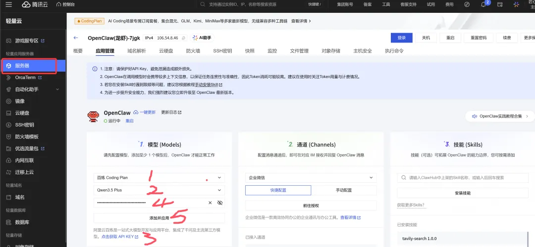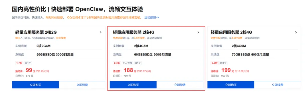 这个在前面说过,就不在赘述了,详见https://mp.weixin.qq.com/s/nM2a3wXQdRYP--RsClXKPQ强调下,这个链接是包年优惠的,长期买这个,比单买便宜不是一点半点https://cloud.tencent.com/act/pro/lighthouse-moltbot#HW,经常用国内环境的就用国内版,经常用gemini、GPT、claude的买国外版,国内的上不了国外,国外的可以上国内,但是流量消耗大二、算力模型的选择
