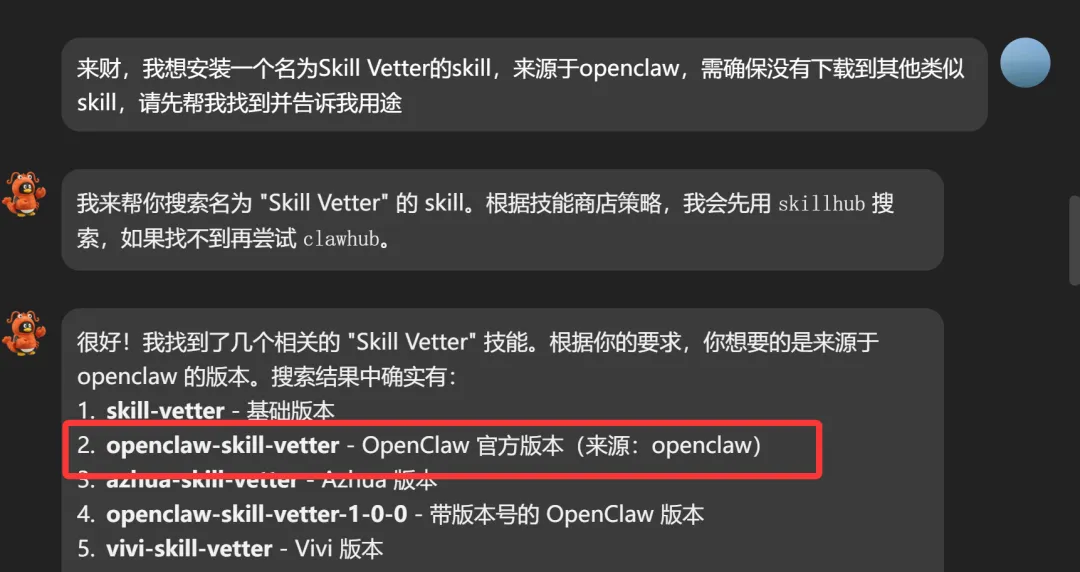 skill主要来源于clawhub/skills(https://clawhub.ai/skills?sort=downloads),或者腾讯的专属skill技能平台skillhub(https://skillhub.tencent.com/),腾讯这个更加友好,可以在这个网站找到对应skill名称,然后去clawhub进行安装你可以直接咨询他你需要一个什么样的skill,让他给你推荐,或者直接告诉他你要安装的skill名称,让他找出相关的来源,确认来源安全后进行安装。搜索需要安装的 skill名称,查找到之后复制/后面的内容,回到腾讯云主界面,输入名称,点击安装技能,安装好后会在技能列表下面显示另外还有服务器终端执行命令安装和客户端安装,相对来说麻烦一点,这里就不详细介绍了,有兴趣的可以评论沟通探讨。5.skill的删除