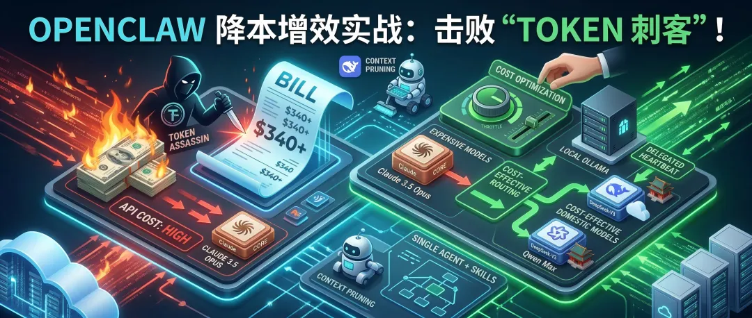 OpenClaw 确实香,能连通讯软件、能读写本地文件、甚至能直接接管浏览器帮你干活。但这种“赛博全自动”体验的背后,其实藏着无数个疯狂烧钱的小黑洞。今天咱们不拽那些高深莫测的架构词汇,就掰开揉碎地聊聊,你的 Token 到底是怎么没的,以及怎么用一套最接地气的方法,把成本断崖式地降下来。