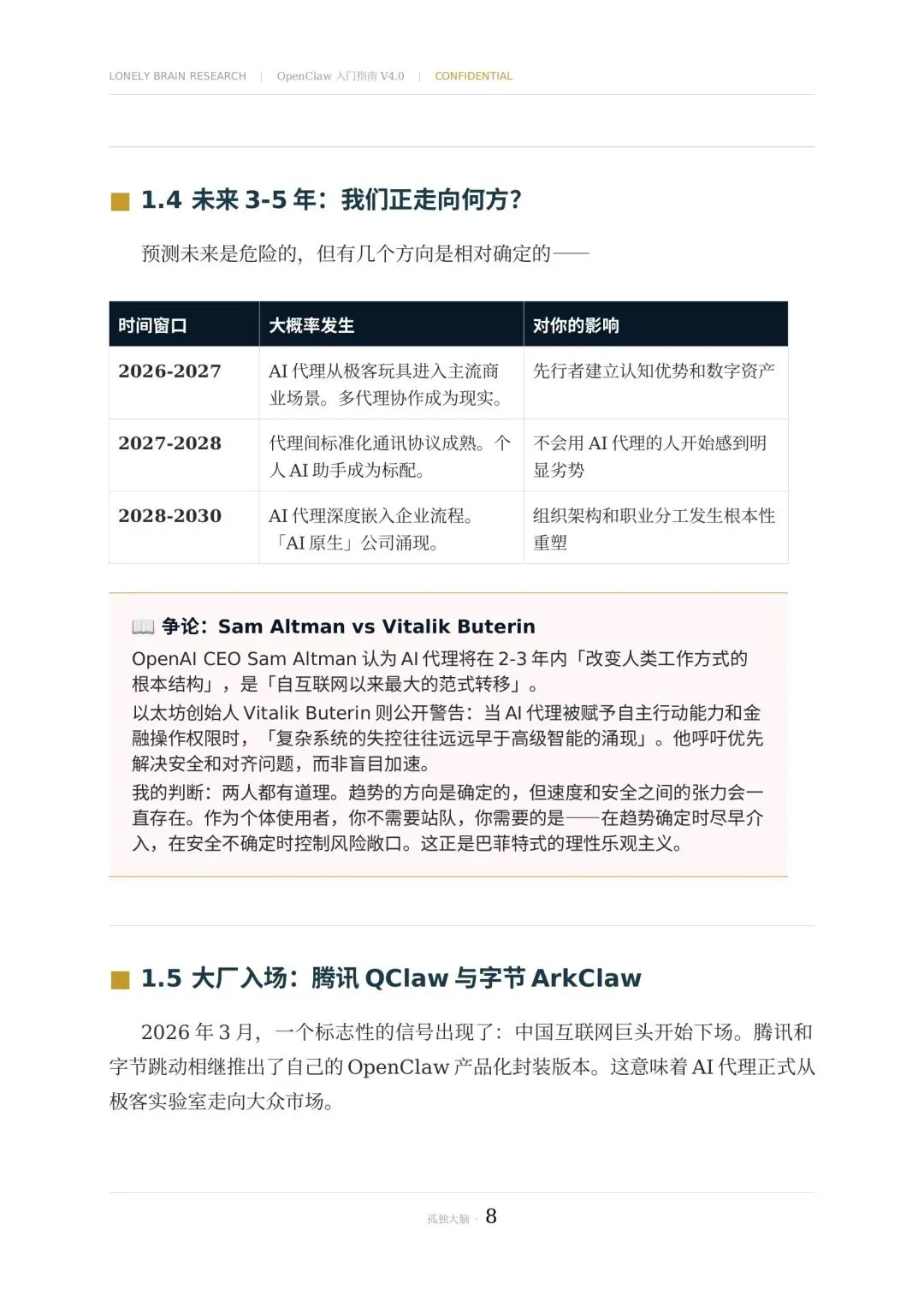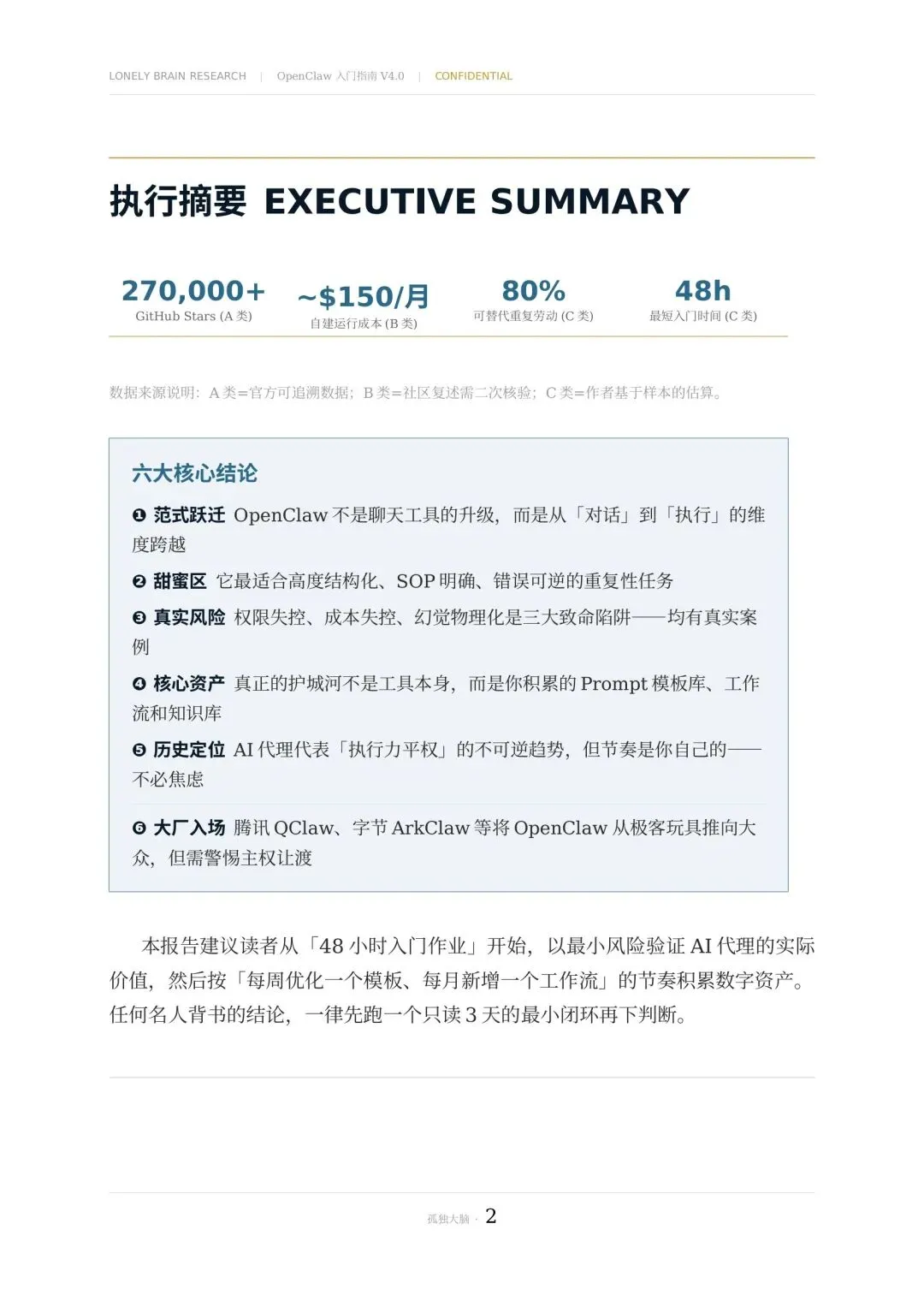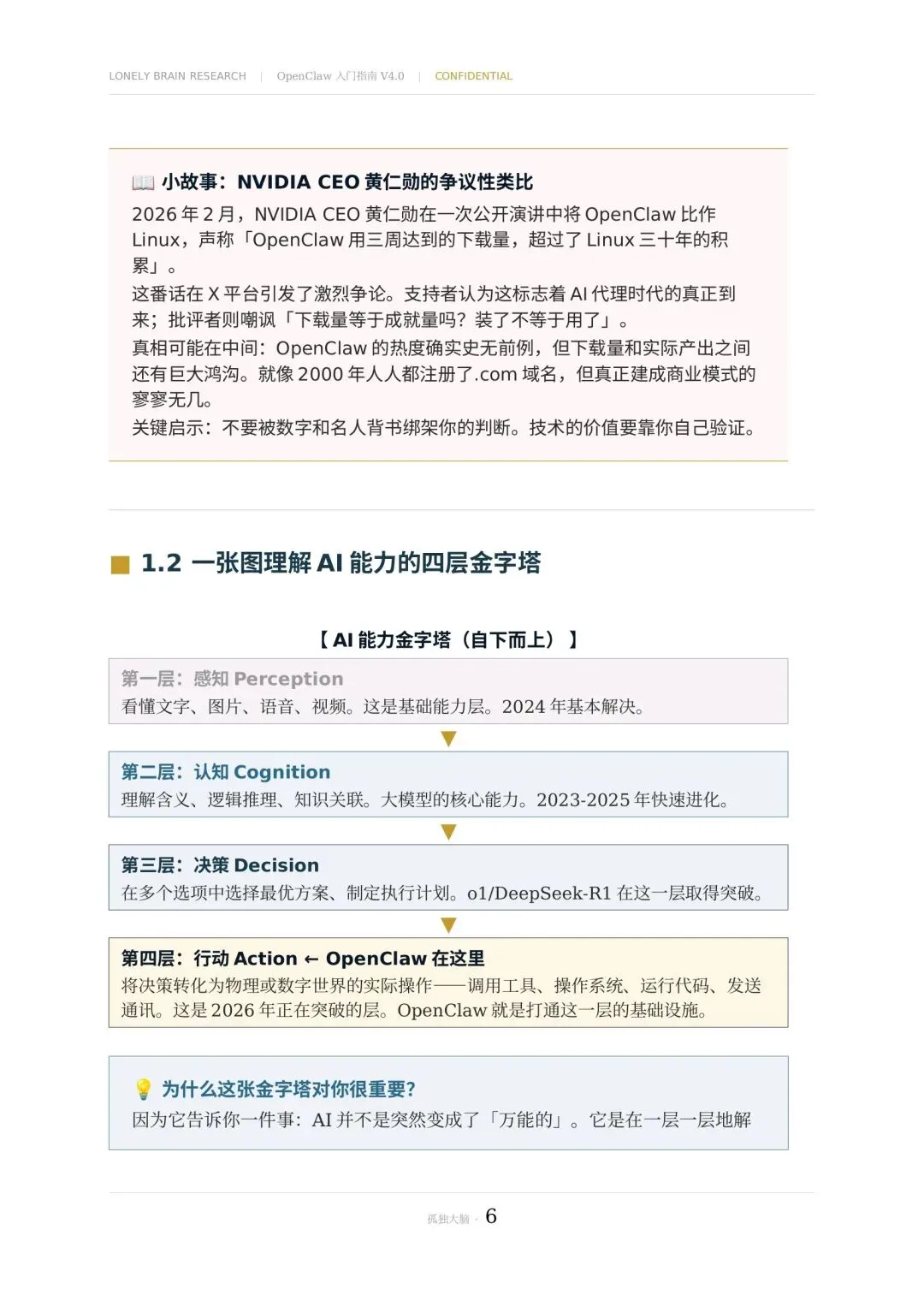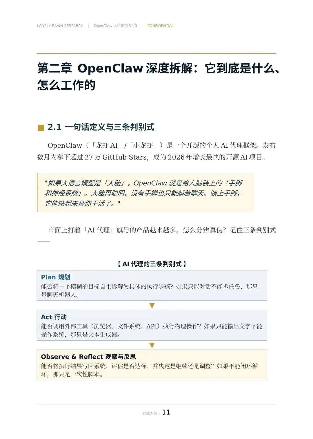今日分享:OpenClaw入门指南:当AI长出了手脚,一份给聪明人的理性上手手册 / 41 页 | 获取报告:看说明下载说明及人工智能智库星球介绍