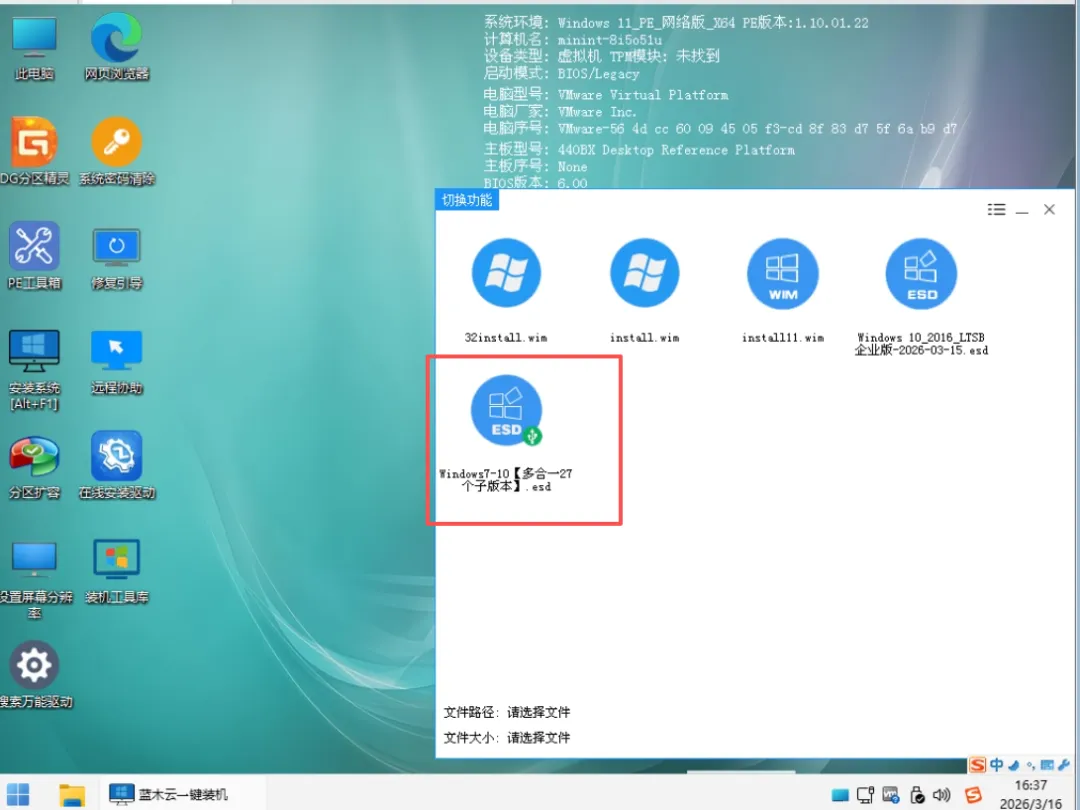 【离线模式】:直接运行PE桌面上的安装工具,从清晰的列表中选择27个内置版本之一,点击安装,全程自动。